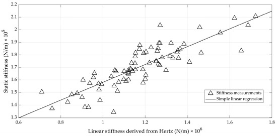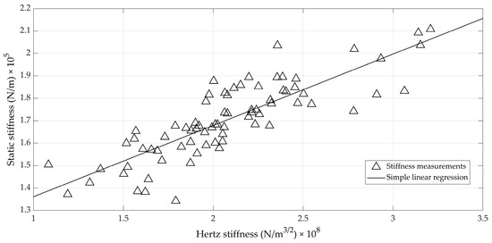 3.4. Calculation of Hertz Stiffness and Its Relation to Static Stiffness