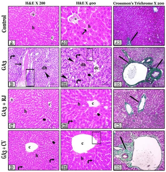 - Sakr, S.; Okdah, A.; Sabah, F.E.-A. Gibberellin A3 induced histological and histochemical alterations in the liver of albino rats. Sci. Asia 2003, 29, 327–331. [Google Scholar] [CrossRef]