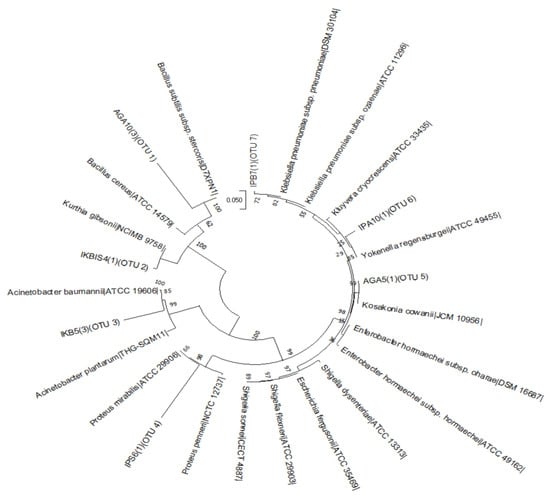 | OTU7 | IPB7(1) | 152 | Klebsiella pneumoniae subsp. pneumoniae | 99.76 | MW448717 | Klebsiella pneumoniae ×3 |