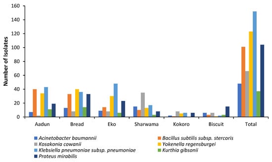 - Amare, A.; Worku, T.; Ashagirie, B.; Adugna, M.; Getaneh, A.; Dagnew, M. Bacteriological profile, antimicrobial susceptibility patterns of the isolates among street vended foods and hygienic practice of vendors in Gondar town, Northwest Ethiopia: A cross sectional study. BMC Microbiol. 2019, 19, 120. [Google Scholar] [CrossRef] [PubMed]