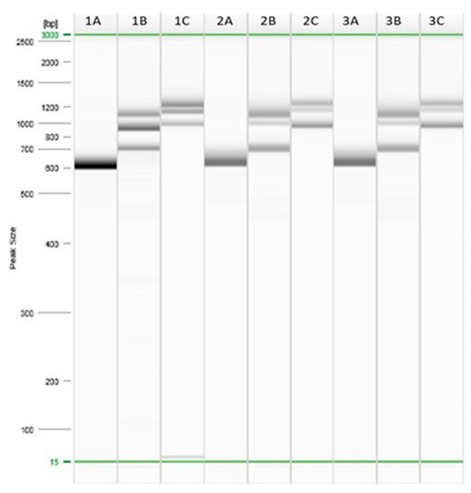DNA extraction and sequencing were carried out for identifying and confirming the fish and meat species of the products with those declared on the label. Briefly, DNA was extracted from 25 mg of fish or meat samples by means of a QIAamp DNA Mini kit (Qiagen GmbH, Hilden, Germany). The target of the analysis was the gene cytB (around 360 bp) of mitochondrial DNA, which was amplified using primer CYTB1 [23]. A PCR reaction mix (50 µL) included 5 µL of DNA (100 ng), 25 µL HotStar Taq Master mix (Qiagen GmbH, Hilden, Germany), 1 µL of each primer (10 µM) and 18 µL of RNAse/DNAse-free water (Merck Life Science S.r.l., Milan, Italy). Thermal profiling consists of the following steps: 15 min at 95 °C, 40 cycles of 15 min at 95 °C, 30 s at 48 °C, 1 min at 72 °C, and a final elongation step of 7 min at 72 °C. The PCR was carried out using T100 Thermal Cycler (Bio-Rad Laboratories, Hercules, CA, USA). Amplicons were separated by means of the QIAxcel Advanced System (Qiagen GmbH, Hilden, Germany).