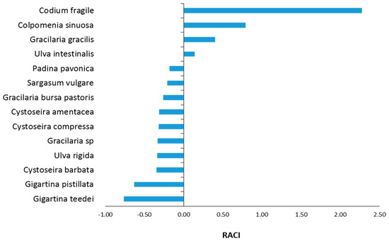 The assessment of the order of the antioxidant potency of macroalgae extracts, taking into account their activity in all antioxidant assays, was based on the evaluation of the RACI for each extract, as described previously [46]. Since RACI estimation was based on IC50 values and RP0.5AU values, the lower the RACI value was, the higher the antioxidant capacity was.