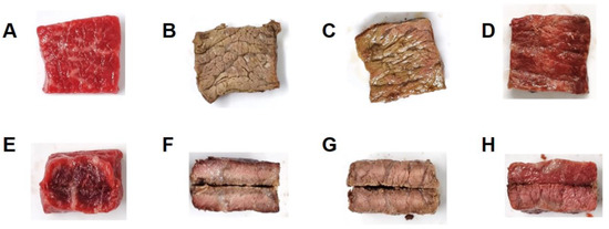 - Palka, K.; Daun, H. Changes in texture, cooking losses, and myofibrillar structure of bovine M. semitendinosus during heating. Meat Sci. 1999, 51, 237–243. [Google Scholar] [CrossRef] [PubMed]