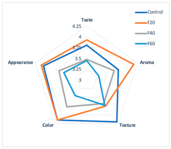The F20 cookies scored the highest values for aroma (4.15) and flavor (3.92); the panelists expressed a preference for the cookie with Maya nut over the cookie with wheat flour (control). However, the panelists scored wheat cookies with the highest mark (4.2) for the texture attribute. The texture attribute is an essential factor in the quality of foods since it influences the final acceptability of the product [