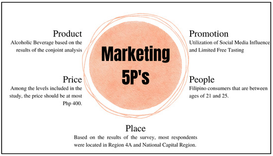 After applying conjoint analysis and data gathering concerning the respondents’ demographics, a marketing plan was formed using the Marketing 5Ps. As previously mentioned, this tool included five distinct elements that would help the company or product strategize its success. As seen in Figure 2, the first element would be the product. Over the years, it has been proven that alcoholic beverages have increased consumption in countries such as the Philippines.