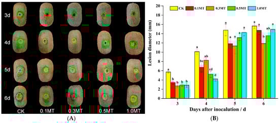 2.5.1. Effects of Preharvest MT on Postharvest Kiwifruit Inoculated with B. dothidea