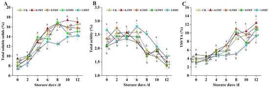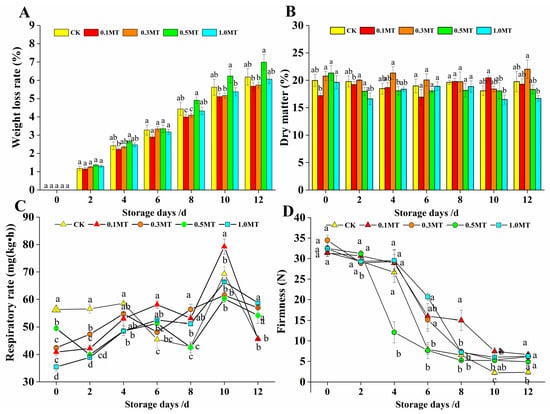 3.4. Effects of Preharvest MT Treatment on the Storability of Kiwifruit