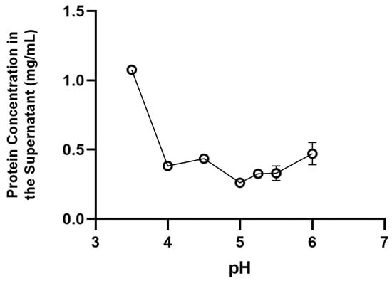 Zidani et al. [25] also obtained a similar result when evaluating yeast protein solubility as a function of pH, with a minor protein concentration in the supernatant at pH 4.