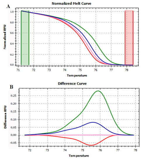 - Farrar, J.S.; Wittwer, C.T. High-Resolution Melting Curve Analysis for Molecular Diagnostics. In Molecular Diagnostics, 3rd ed.; Academic Press: Cambridge, MA, USA, 2017; pp. 79–102. [Google Scholar] [CrossRef]