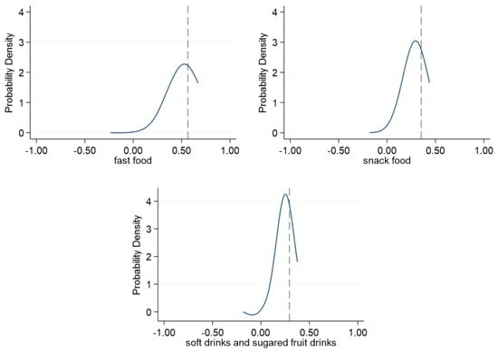 In the basic regression, this paper adopts Oprobit and OLS models to estimate the parameters of the survey sample. Table 2 reports the estimation results of the Oprobit model and the OLS model. For all three unhealthy food categories, the coefficients of the peer effect were significantly greater than 0. This shows that whether based on the OLS model, which treats dietary preference as a continuous variable, or the Oprobit model, which addresses intrinsic ranking, peers played a significant positive impact on the unhealthy dietary preferences of rural children.