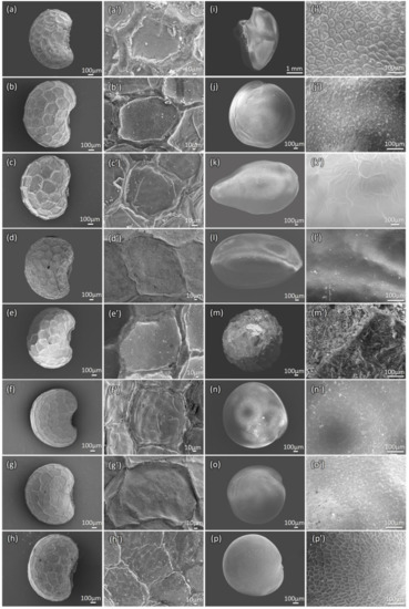 3.1. Scanning Electron Microscopic Observation of Poppy and Its Adulteration/Substitution Seeds