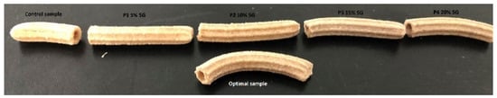 Good quality pasta must have several attributes: moderate optimum cooking time, low cooking loss, water absorption and swelling index, moderate increase in volume with firmness and high chewiness and low adhesiveness, given by a consolidated and non-continuous protein matrix. This limits the swelling of starch and makes the diffusion of water to the core of the pasta difficult, leading to greater retention of amylose in the structure and less amylopectin on the surface [91]. All these studies show that spent grain can be used in a saturated market to produce innovative products; the ingredients used represent a stable and sustainable solution for spent grain upcycling.