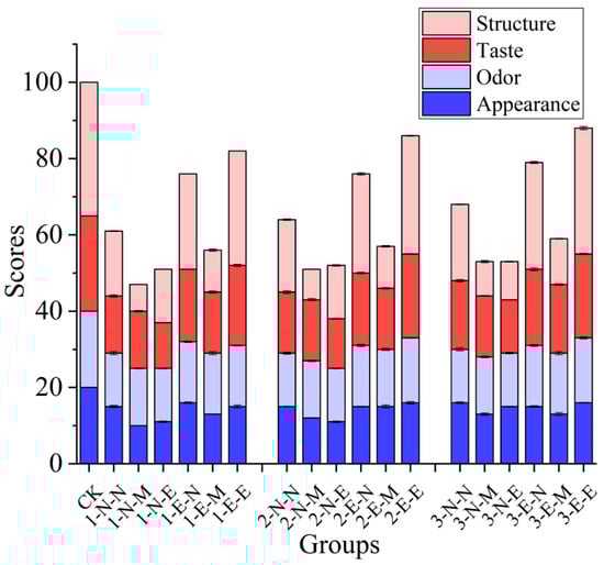 | Sample | Hardness (g) | Elastic (J/F) | Cohesion | Adhesion (g·s) | Chewiness (g) | Reversibility | Moisture (g/100 g) |