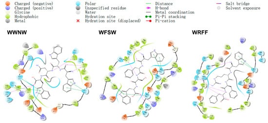 The 2D interaction map of ACE with the top three tetrapeptides.