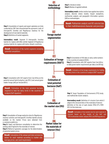 Methodological flowchart for the estimation of potential markets of hybrid forages in Africa.
