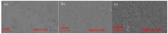 Regarding the control film, Bagheri et al. (2019) [] report that sodium alginate films dried above 57 °C show a structure with few pores and cracks, because solutions formed at higher temperatures have a lower viscosity, allowing the escape of microscopic air bubbles. Bodini et al. (2013) [] reported that the increase in EEP concentrations in a gelatin polymeric matrix produces an increase in porosity due to the distribution of the agent, causing the structure to be irregular compared to the control film, consistent with what was observed in this study.