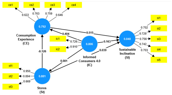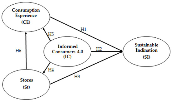 Based on the observations highlighted, we hypothesized that informed consumers 4.0 (CI) have a direct effect on sustainable inclinations.