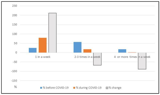 During the health emergency due to COVID-19, there was an increase in the online purchase of packaged baked goods in the face of high home preparation of baked goods. During the lockdown, families prepared bread, focaccia and snacks and sweets at home in 75%–85% of cases. Only 5.3% stated that they had not prepared baked goods at home. In the remaining cases, they were regularly purchased in stores.