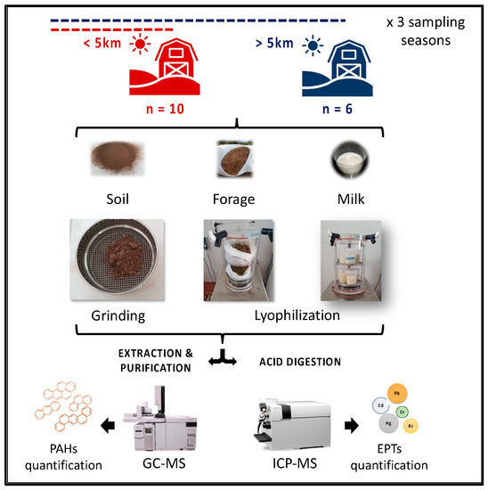 2.5. Determination of PAHs in Soil, Forage, and Milk by Gas Chromatography–Tandem Mass Spectrometry (GC-MS/MS)