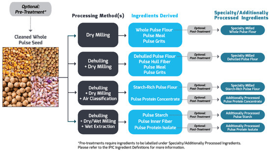 Outline of processing steps of pulses involved in the production of different pulse-derived ingredients (as defined by the International Pulse Ingredient Consortium [39]).