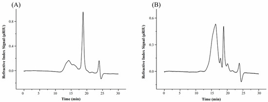 Gel permeation chromatogram profiles of U-SDF (A), M-SDF (B).