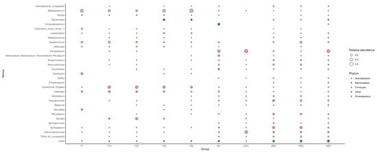 Bubble diagram of microbiota in human milk and infant stools (M: breast milk; F: feces).