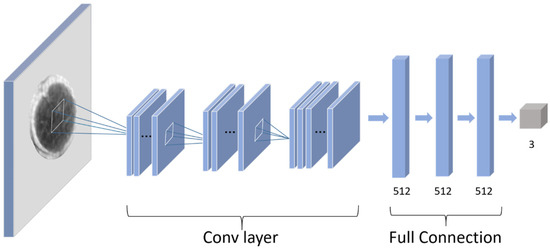 As shown in Table 2, a convolutional neural network including 3 convolution layers and 3 full connection layers was used in this study. The convolutional layers consist of 4, 8, and 16 filters with a filter size of 3 × 3. A 2 × 2 max-pooling function was used to modify the output results of the convolutional layer. In the AFNet, the L2 regularization method and dropout layer was used to prevent overfitting. The set strategy of the dropout rate for each layer is shown in Table 2. In this work, the rectified linear unit (ReLU) was used as an activation function overall in the network. In the output layer, a Softmax activation was employed to solve the binary classification problem. Sparse categorical cross-entropy loss function was used to train the network.