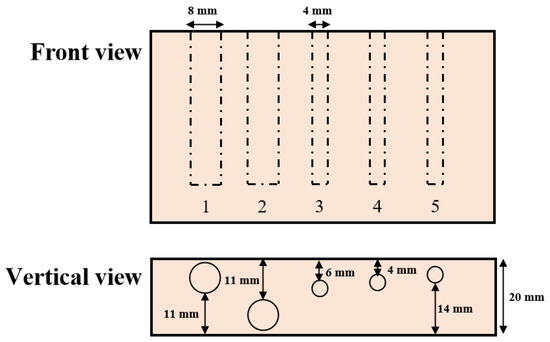 Schematic of relative positions and sizes of holes in the nylon sample filled with absorbing ink solution.