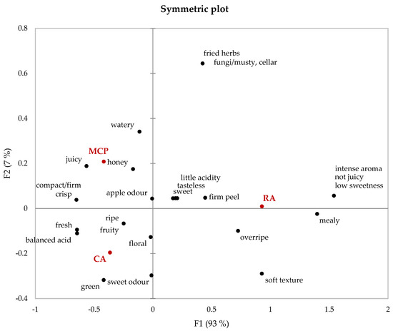 - Corollaro, M.L.; Endrizzi, I.; Bertolini, A.; Aprea, E.; Demattè, M.L.; Costa, F.; Biasioli, F.; Gasperi, F. Sensory profiling of apple: Methodological aspects, cultivar characterisation and postharvest changes. Postharvest Biol. Technol. 2013, 77, 111–120. [Google Scholar] [CrossRef]