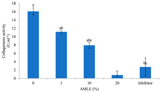 2.9. Inhibitory Effect of AMLE on Collagenase-Like Activity