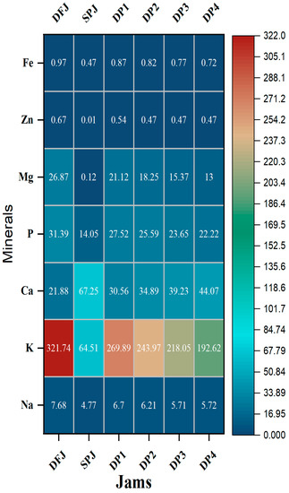 Date fruit, sweet potato, and jam samples were prepared for the determination of minerals, as defined previously [23]. The minerals were determined through inductively coupled plasma atomic emission spectrometry (Varian-Vista-MPX; Varian, Inc., Palo Alto, CA, USA), as outlined in the manufacturer’s manual.