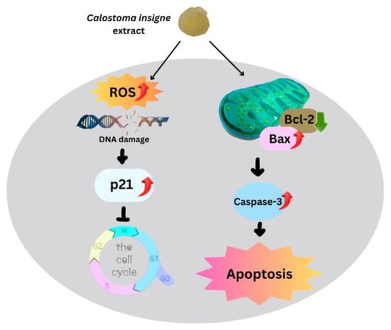 Proposed apoptotic mechanisms of the puffball mushroom (C. insigne) gelatinous fruiting body extract in HT-29 cells.