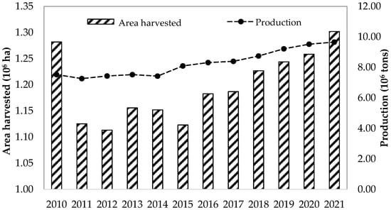 - FAOSTAT. Available online: https://www.fao.org/faostat/en/#data/QCL (accessed on 31 March 2023).