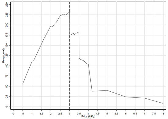 Figure 4 shows the potential revenue linked to different price levels. The optimal price (i.e., dotted line) that maximises the revenue equals EUR 3.00 per kilo.