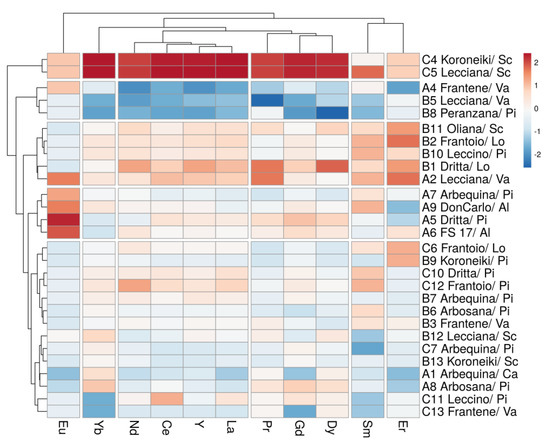Heatmap plot of REEs and olive oils.