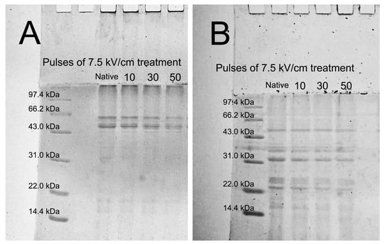 3.3. SDS-PAGE Analysis of N-QPIs and PEF-QPIs
