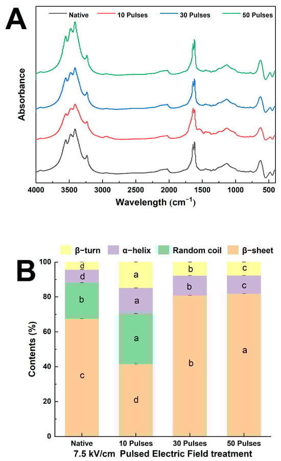 3.4. Effect of PEF Treatment on the Secondary Structure of QPIs
