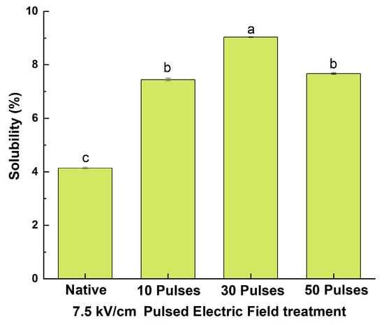 3.7.1. Effect of PEF Treatment on the Solubility of QPIs