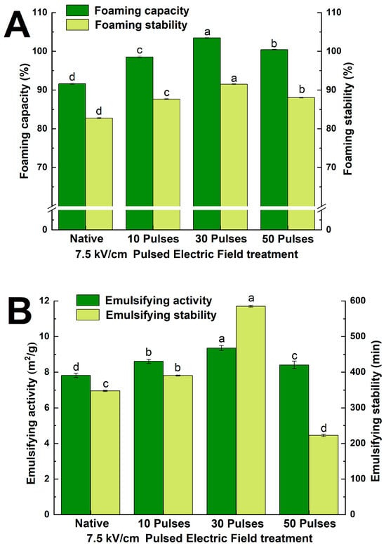 3.7.2. Effect of PEF Treatment on Foaming and Emulsifying Properties of QPIs