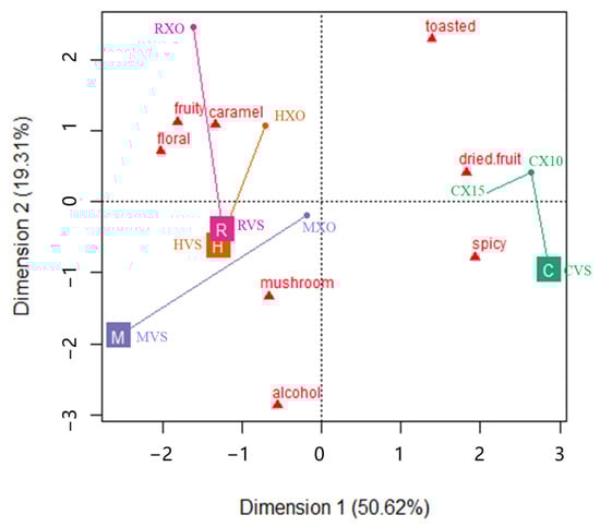 - Caldeira, I.; Mateus, A.; Belchior, A. Flavour and odour profile modifications during the first five years of Lourinhã brandy maturation on different wooden barrels. Anal. Chim. Acta 2006, 563, 264–273. [Google Scholar] [CrossRef]