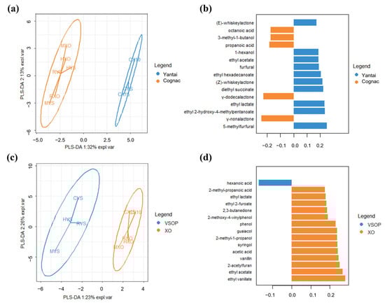 - Ledauphin, J.; Le Milbeau, C.; Barillier, D.; Hennequin, D. Differences in the volatile compositions of French labeled brandies (Armagnac, Calvados, Cognac, and Mirabelle) using GC-MS and PLS-DA. J. Agric. Food Chem. 2010, 58, 7782–7793. [Google Scholar] [CrossRef] [PubMed]