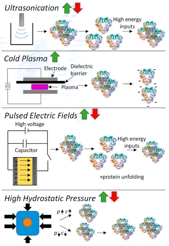 - Lian, F.; Sun, D.-W.; Cheng, J.-H.; Ma, J. Improving modification of structures and functionalities of food macromolecules by novel thermal technologies. Trends Food Sci. Technol. 2022, 129, 327–338. [Google Scholar] [CrossRef]
