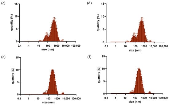 Three measuring repetitions of the particle size distribution within the emulsion samples were performed. The collected results are presented graphically in Figure 1 and Figures S6–S8. From the graphs, it can be seen that the largest number of particles is between 100 and 1000 nm.