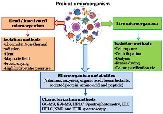 Figure 3. Isolation of postbiotics from probiotics and characterization methods.