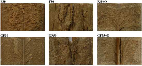 Photographs of the extrudates’ inner structure (see Table 1 for details of the samples).