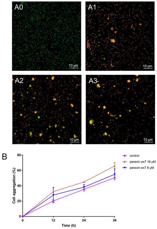 To further reveal whether paracin wx7 affected the quorum sensing of E. faecalis, cell aggregation was investigated. The results (Figure 2B) showed that paracin wx7 treatment induced cell aggregation of E. faecalis in a concentration-dependent manner.