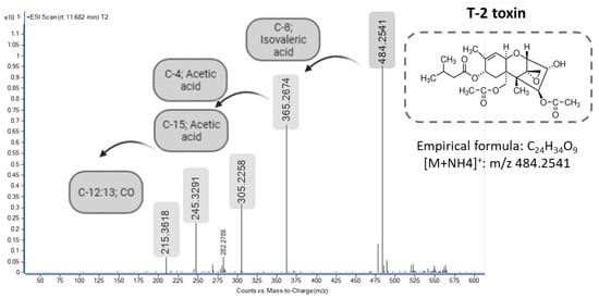 2.5. Determination of T-2 and Its Biotransformation Products by LC-Q-TOF MS