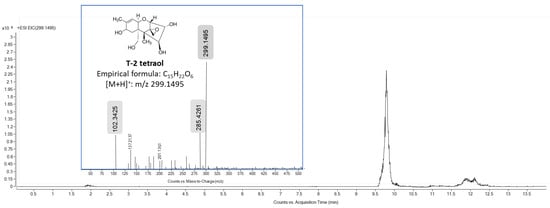 | T2-tetraol | 9.91 | C15H22O6 | 299.1495 | [M + H]+ | −0.54 | 285 a, 102 |