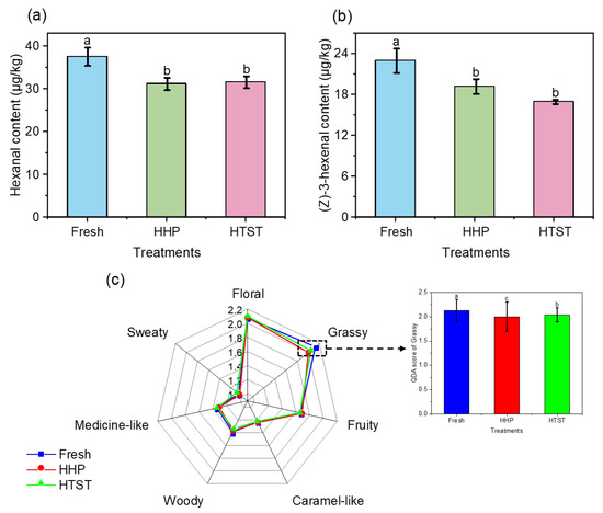 Chicago/Turabian StyleZhang, Wentao, Xuejie Li, Xuzeng Wang, He Li, Xiaojun Liao, Fei Lao, Jihong Wu, and Jian Li. 2024. "Decoding the Effects of High Hydrostatic Pressure and High-Temperature Short-Time Sterilization on the Volatile Aroma Profile of Red Raspberry Juice" Foods 13, no. 10: 1574. https://doi.org/10.3390/foods13101574