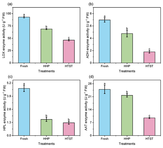 3.2. Effects of Different Sterilization Methods on Key Enzymes in the Fatty Acid Metabolism Pathway of Red Raspberry Juice